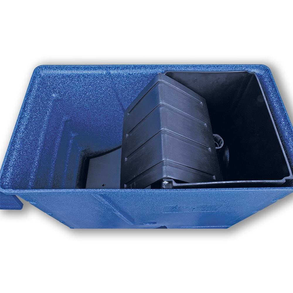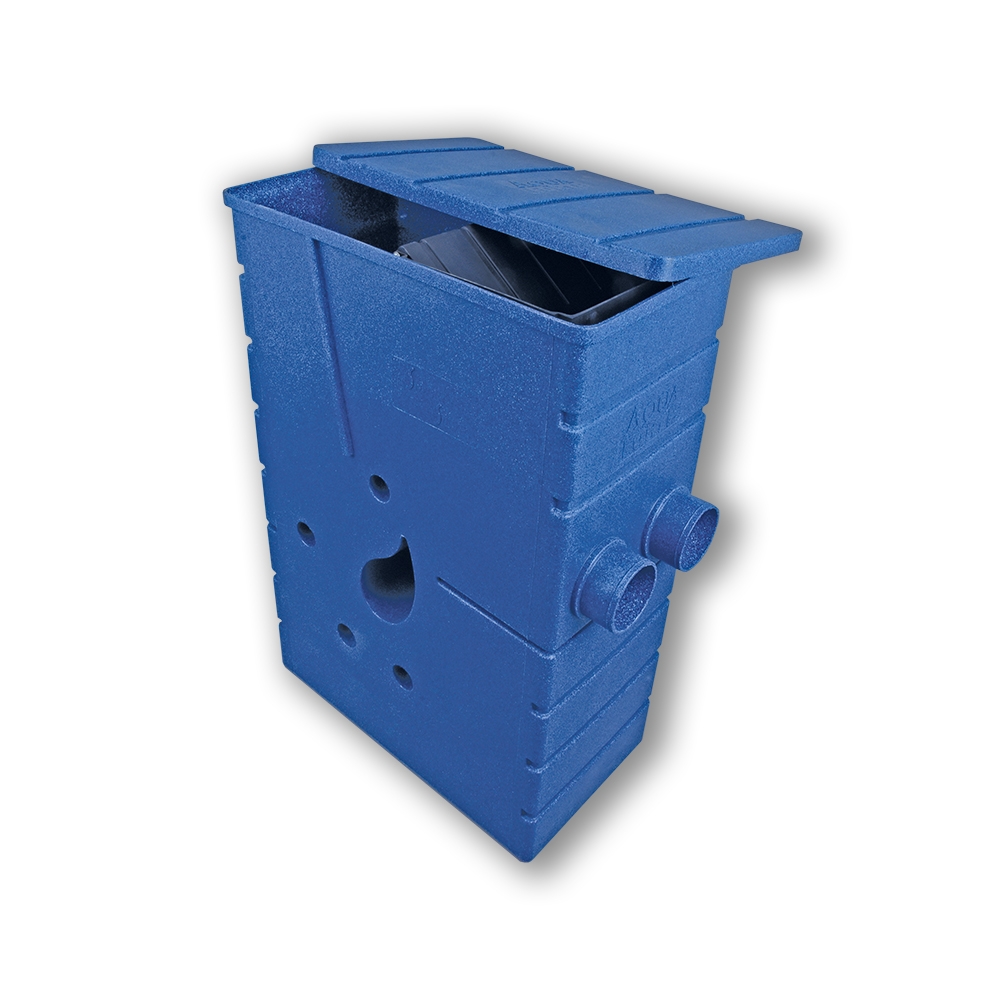 The AquaForte SmartSieve Blue is used as a pre-filter to remove large dirt particles from pond water.
