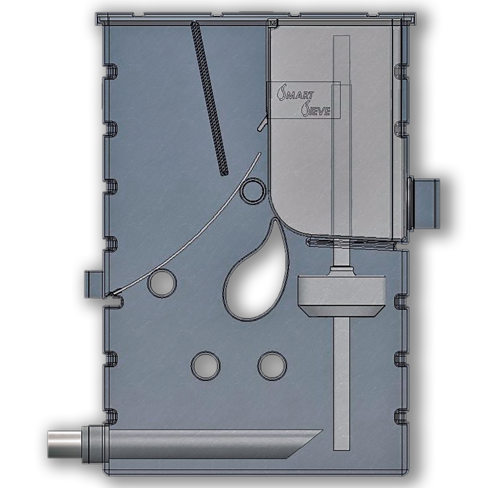 The screen arch filter for gravity installation has a 300 micron stainless steel screen element.