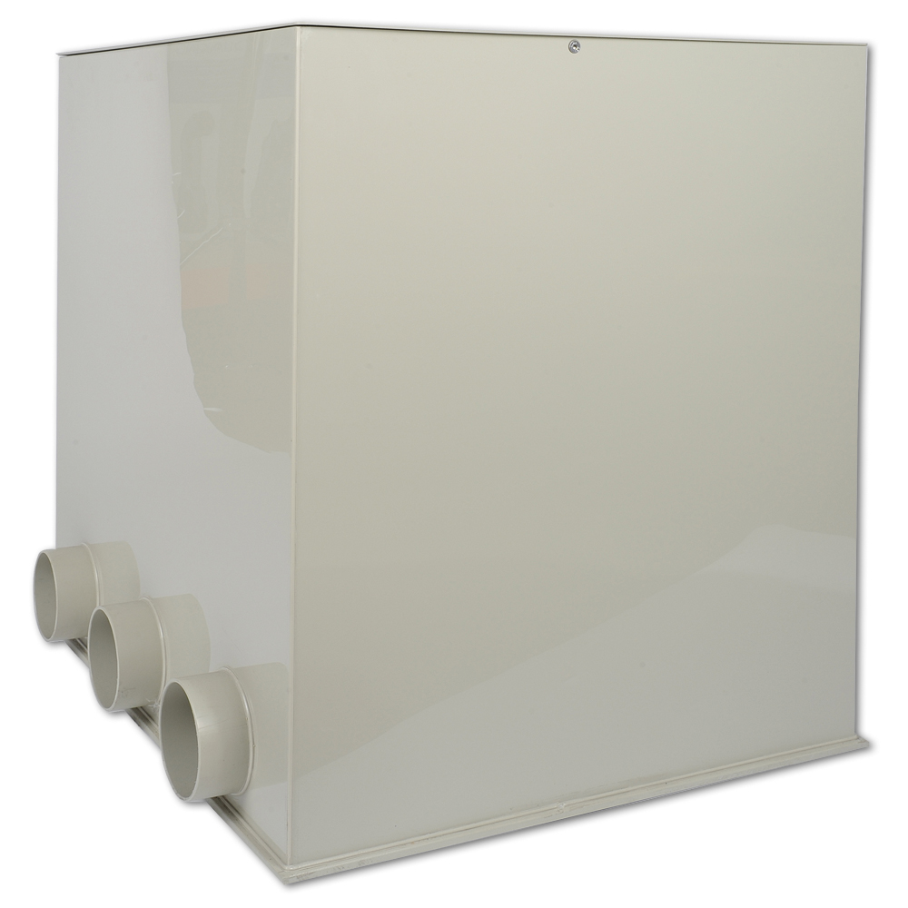 This version also offers you the option of accommodating three Pond Police Industrial UVCs in the sieve. There is 62 cm of space, so the 44 W and 63 W Pond Police lamps are a perfect fit. Threads are also pre-installed so that the lamp can be installed directly in the sieve. The inlets have been placed at the bottom so that the inflowing water flows around the lamp.