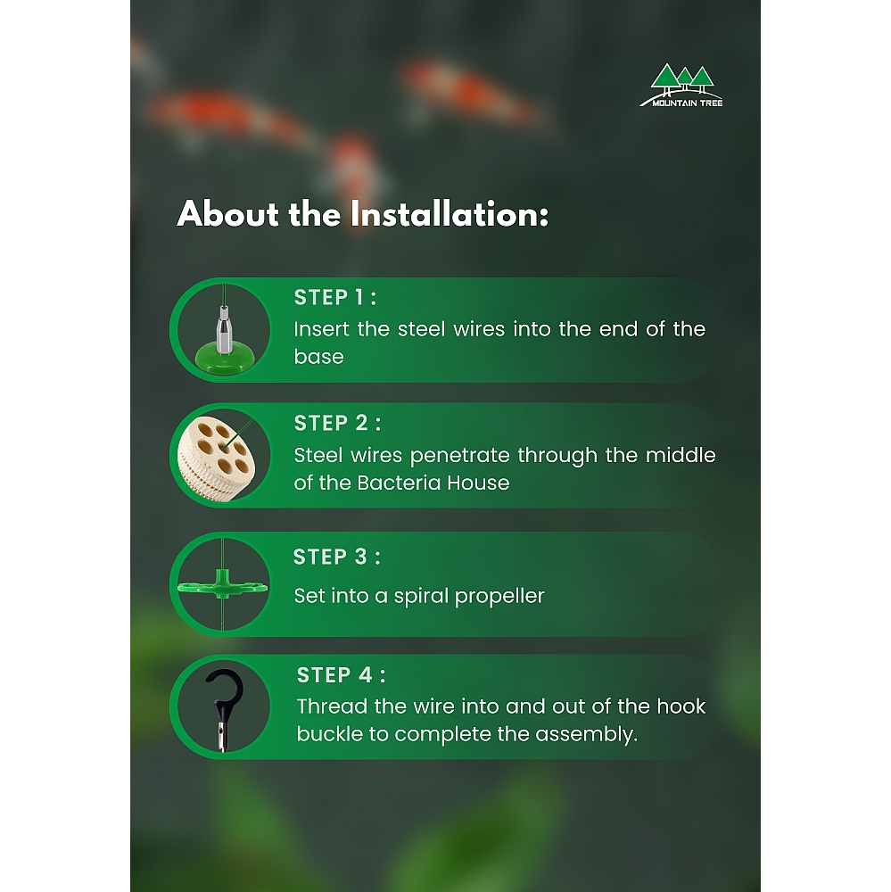With these hooks, you can hang Mountain Tree bacteria houses like filter brushes.