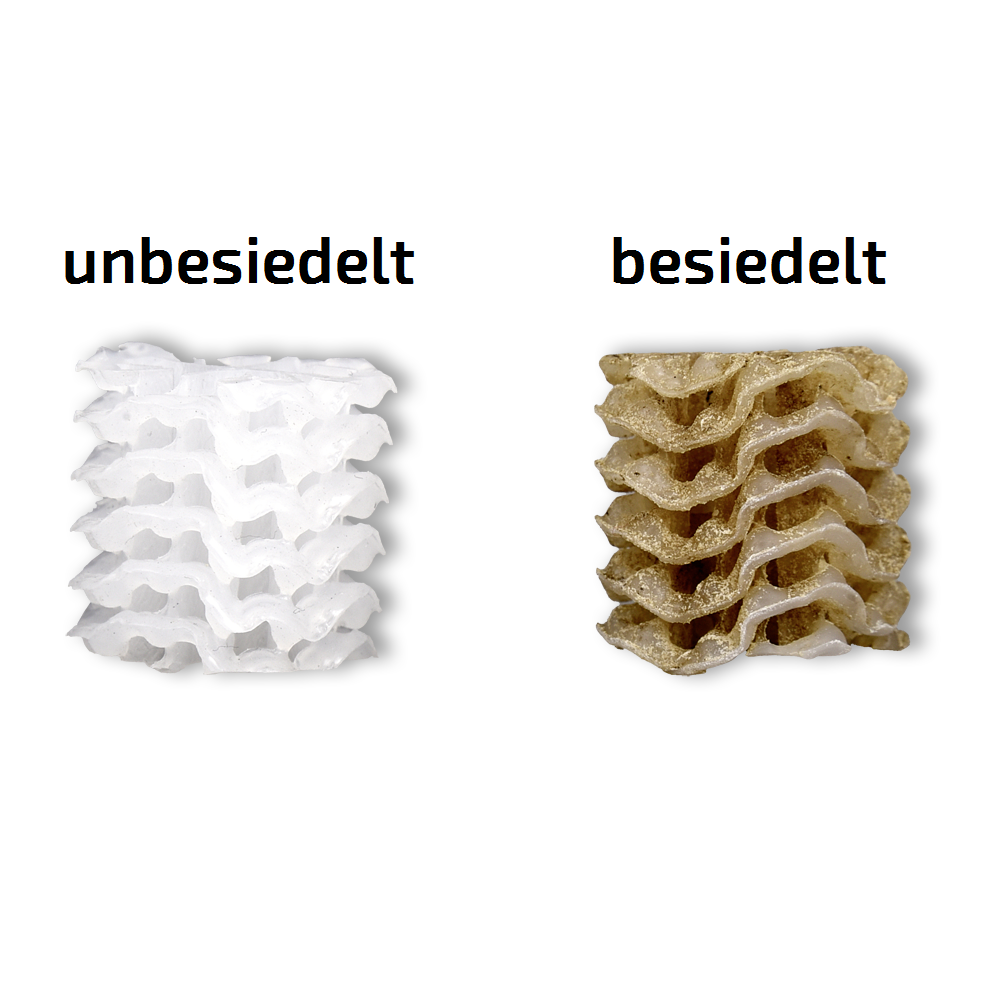 White Hel-X is made from new and pure granulate, while black Hel-X is made from recycled granulate. With white Hel-X, colonised bacteria cultures become visible more quickly due to the discolouration of the white material.