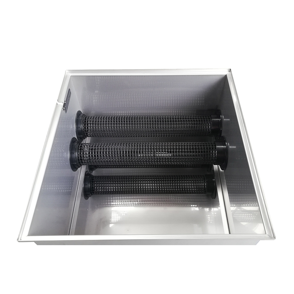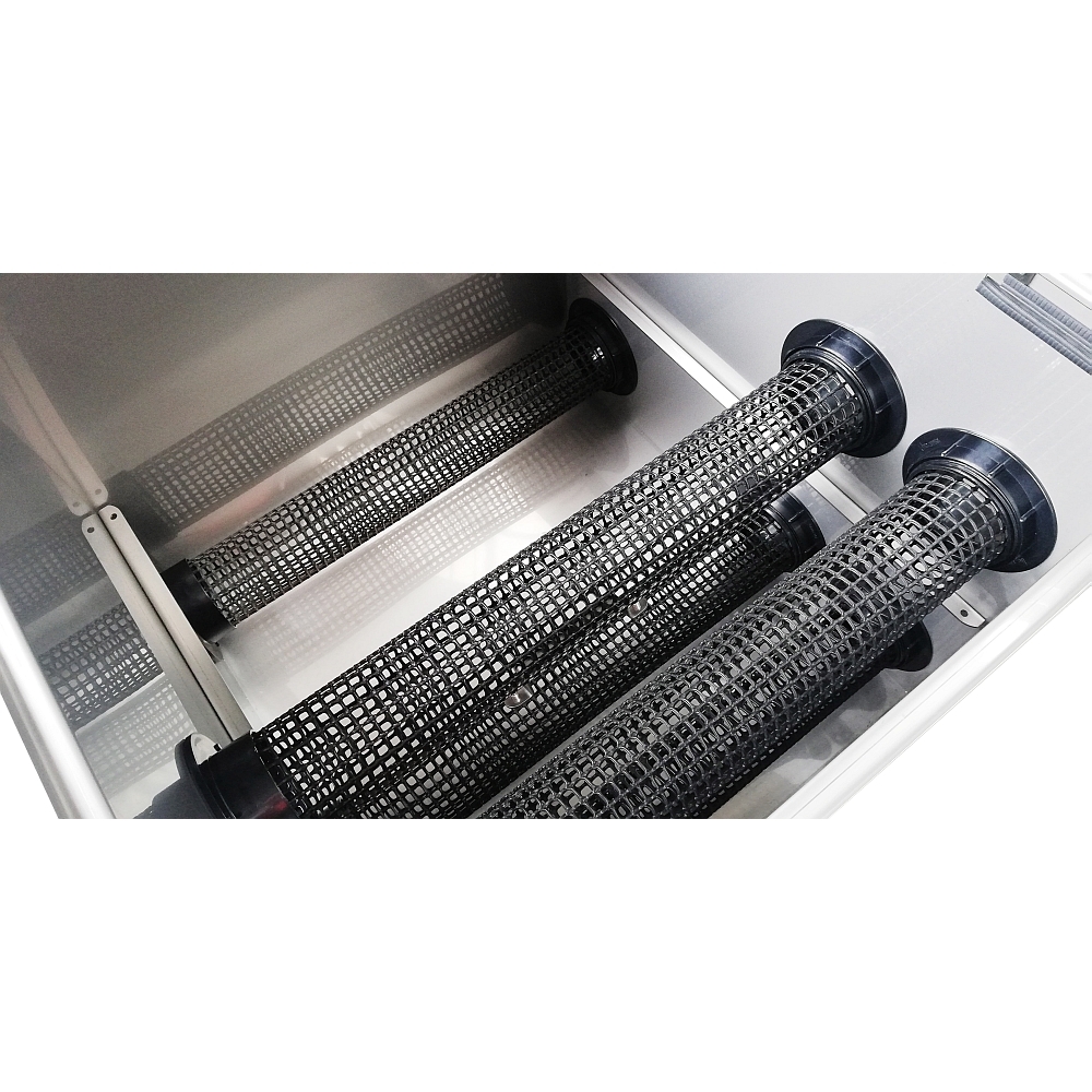 Stainless steel biochamber with over 300 l (gravity feed) or 200 l (pump feed) usable bio volume. Suitable for filters in the Quantum series, katan series and drum filters in the septem series "without biochamber".