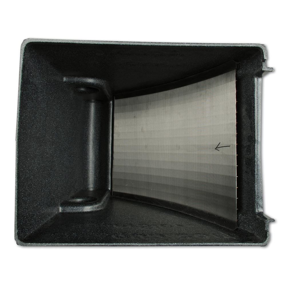 The stainless steel screen element is 32 cm wide and 46 cm long, the same size as the large screen filters, and has a mesh width of 300 microns. The maximum capacity is 22m³/h. Water is fed in via a 63mm connection piece. A 63mm flexible sleeve with a threaded sleeve and 3-stage hose nozzle 25/32/40mm (all included) can be connected to this. The outlet is a 75/110 mm connection piece. The housing is made of PE and includes a cover. The overflow protection is 75 mm and the dirt drain is 63 mm. All connection pieces are available on both sides. You only need to saw open the openings you require.