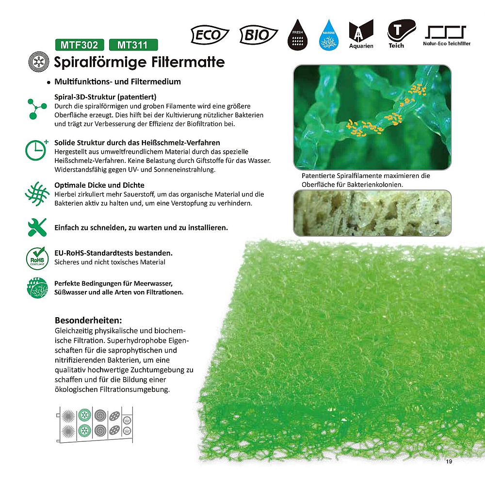 - Biochemical mat. Suitable for filtration in ponds and aquariums