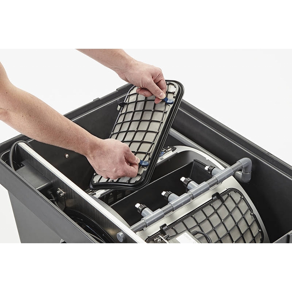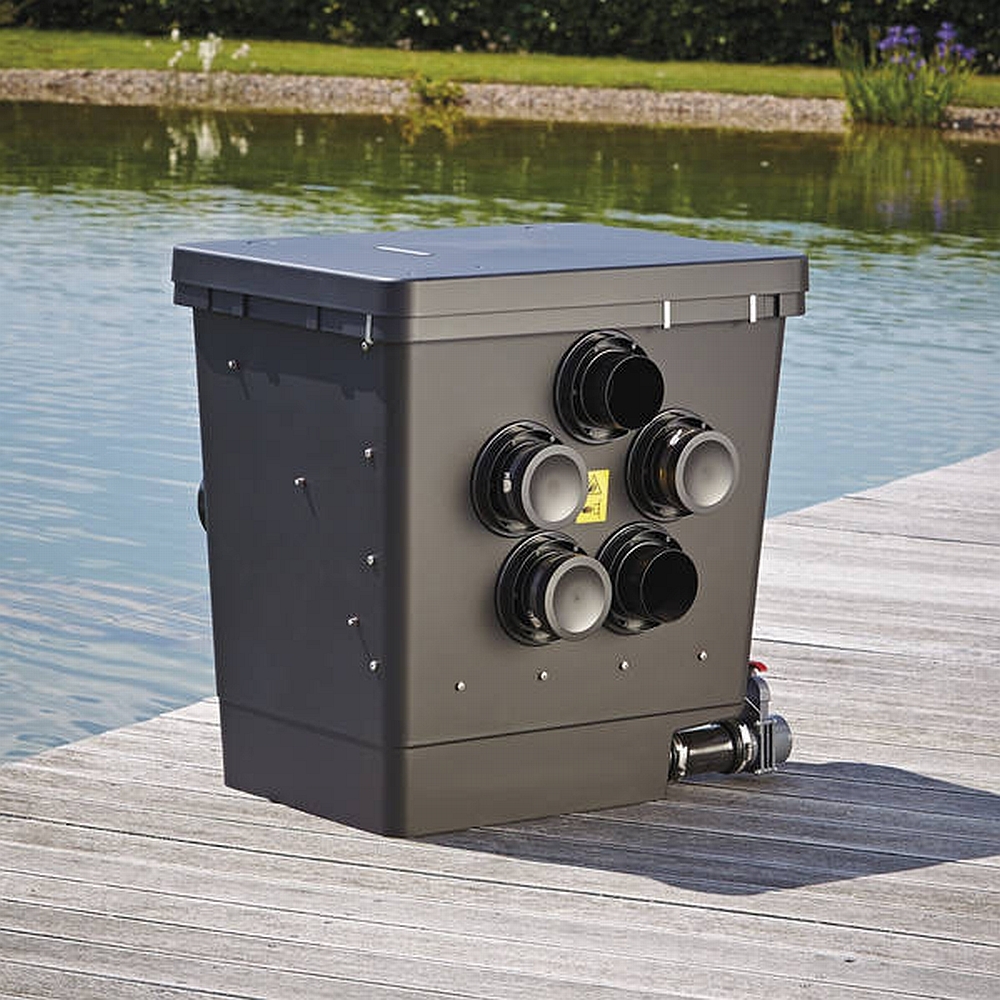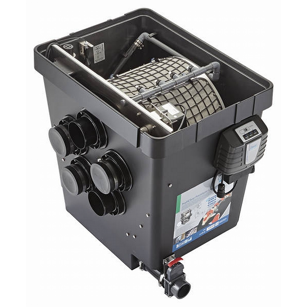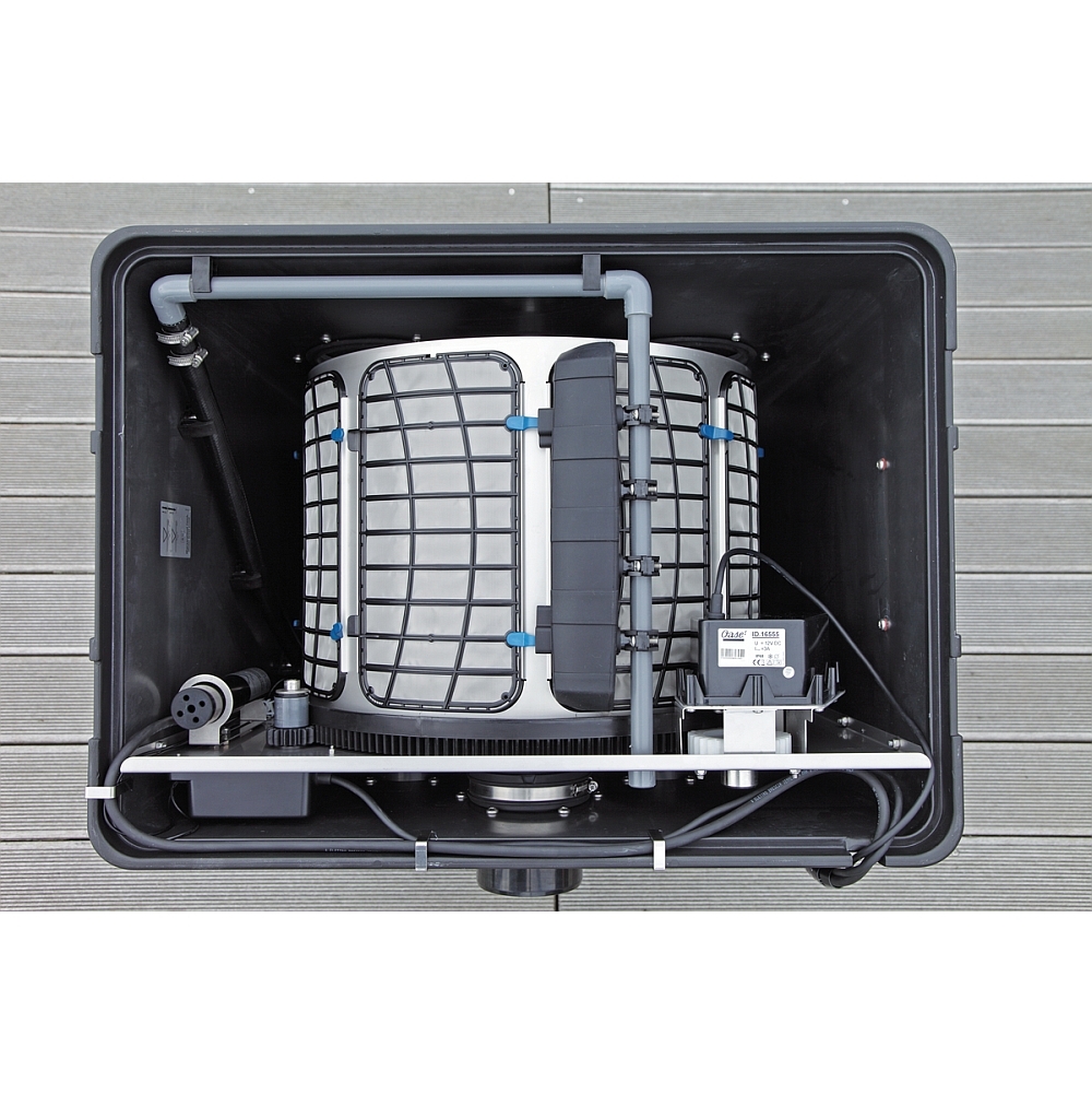The fully automatic control system takes care of the dirt while you enjoy a clear pond. Interval rinsing and manual rinsing can be programmed as required. The drum filter control system can be used to set the forced rinsing, rinsing duration and additional rinsing. The cleaned pond water is used for the 6 bar flushing. And it's quiet too, thanks to the sturdy housing. The filters can be easily dismantled and taken apart for cleaning purposes. Eight individual sieve elements ensure easy maintenance.