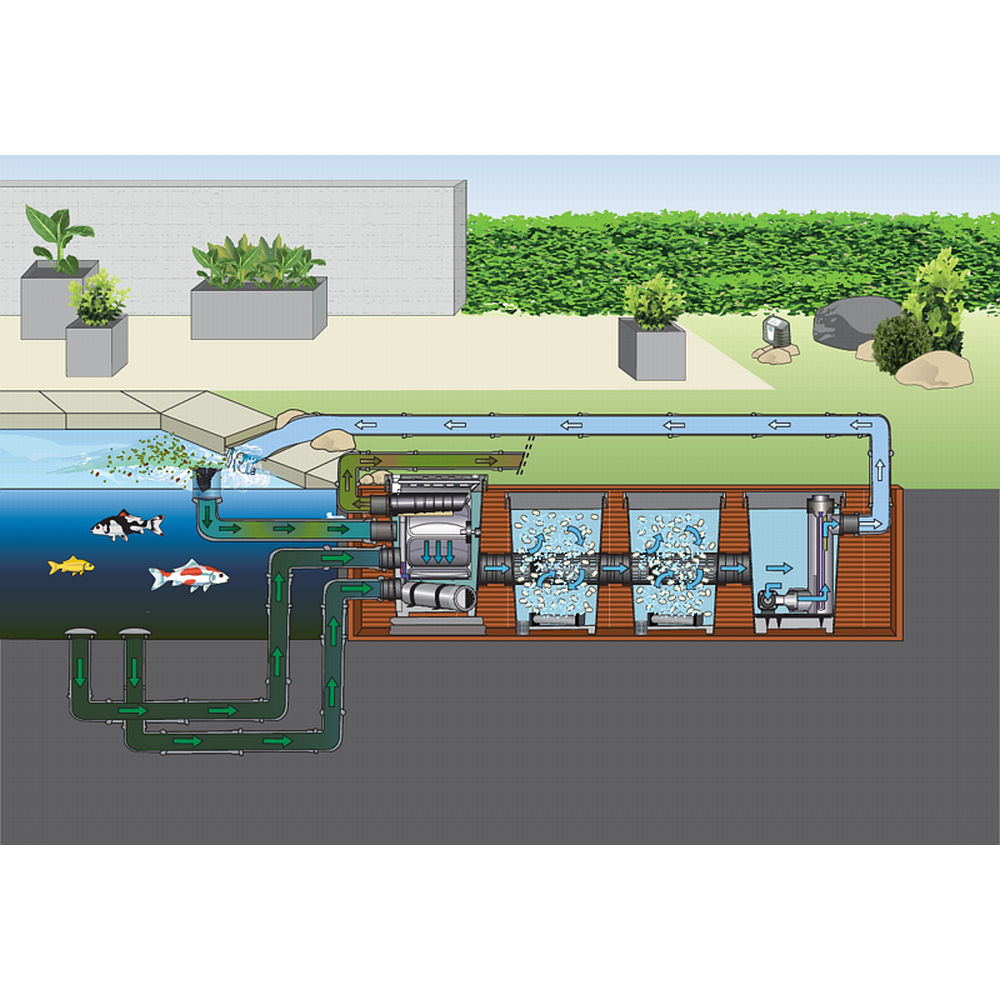 The fully automatic cleaning of the drum filter means that little effort and maintenance is required to clean the filter, giving the user maximum convenience for their koi pond.
