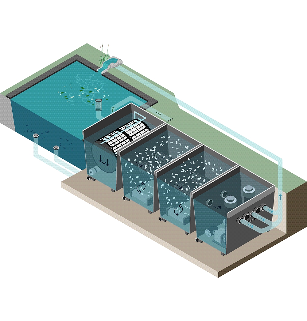 The flow-through drum filter from OASE is a modern modular filter system for professional water quality in confined spaces.