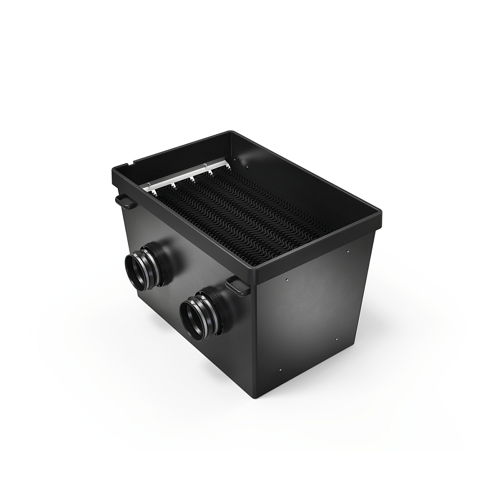 The OASE ProfiClear Premium Standing Bed Module XL fixed bed filter impresses with its top-class filter blocks. Their dense structure creates the largest possible surface area for colonisation by water-purifying microflora. Up to 66,000 litres of water flow through the chamber every hour. A floor drain with a slide valve makes filter rinsing easy. The glass fibre reinforced plastic housing is extremely UV and temperature resistant. For best results, an OASE drum filter is installed upstream.