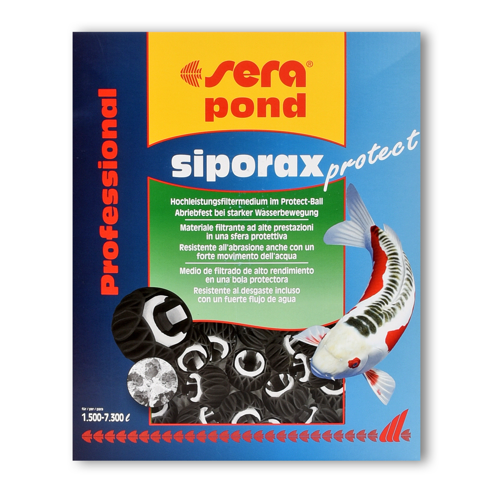 sera siporax pond protect Professional is a biological filter medium with an abrasion-resistant Protect Ball, specially developed for use in filter systems with strong water movement. The outer shell protects the inner siporax ring and directs the water flow directly into it. This allows the sintered glass ring to be flowed through even more effectively and increases the nitrification performance of the filter bacteria through maximum oxygen input.