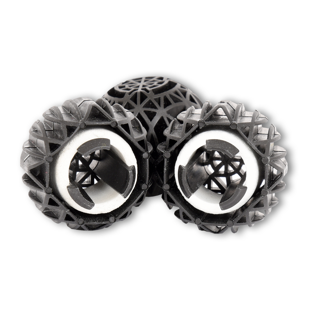 The inner siporax has been proven to provide ideal colonisation conditions for filter bacteria thanks to its porous, unique 3D tunnel structure. The surface area required for colonisation is maximised and pollutant degradation is maximised. The result is biologically clean water and a particularly long filter service life.