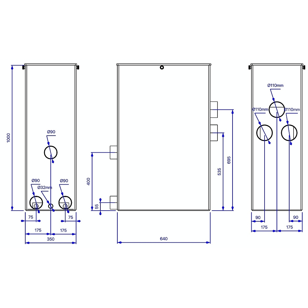 The SuperSieve is equipped with several 90 mm pump connections, which means that an additional skimmer pump can also be connected separately.