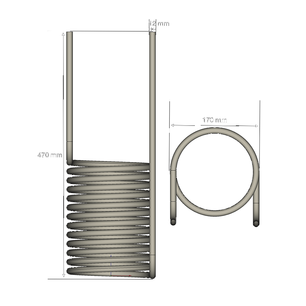 This solution is simpler. The heat exchanger only needs to be placed in the water. The heating coil is made entirely of stainless steel (V4A) and does not cause any back pressure in the system; the water flows around the heating element to ensure maximum heat transfer.